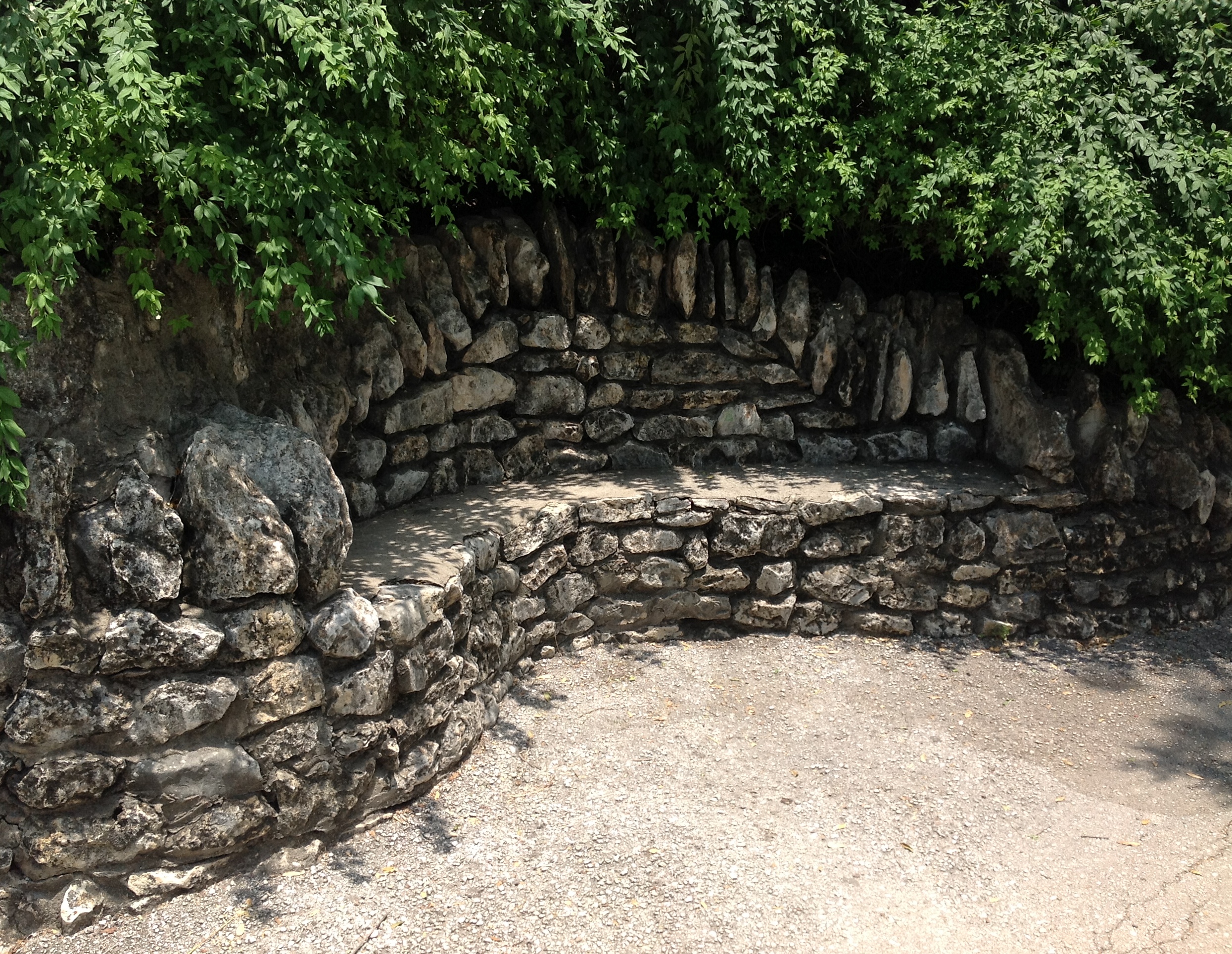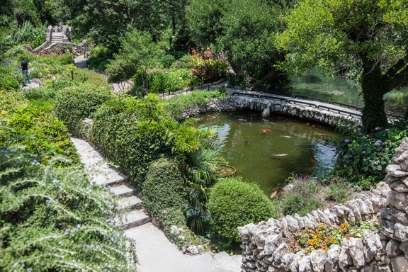 There are many striking features about this garden – the stonework on paths, benches, structures and ponds alone is worth a visit. Initially, in 1840 the property was a quarry. In 1880, the Alamo Roman and Portland Cement Company constructed the first cement plant west of the Mississippi. A smokestack near a gazebo overlook marks the kiln that was built in 1889.