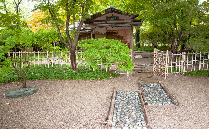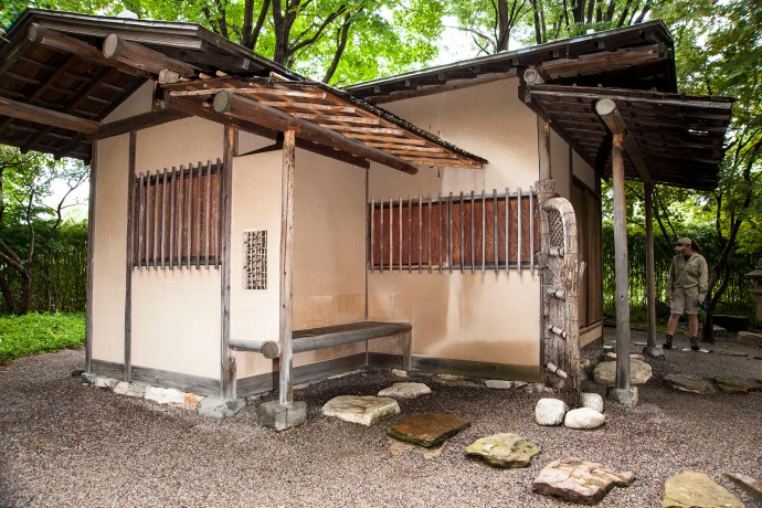 A four and a half mat tea house was donated byMissouri’s Sister State Nagano. Nearby is a yukimi-doro, snow viewing lantern donated by St. Louis’ Sister City Suwa.