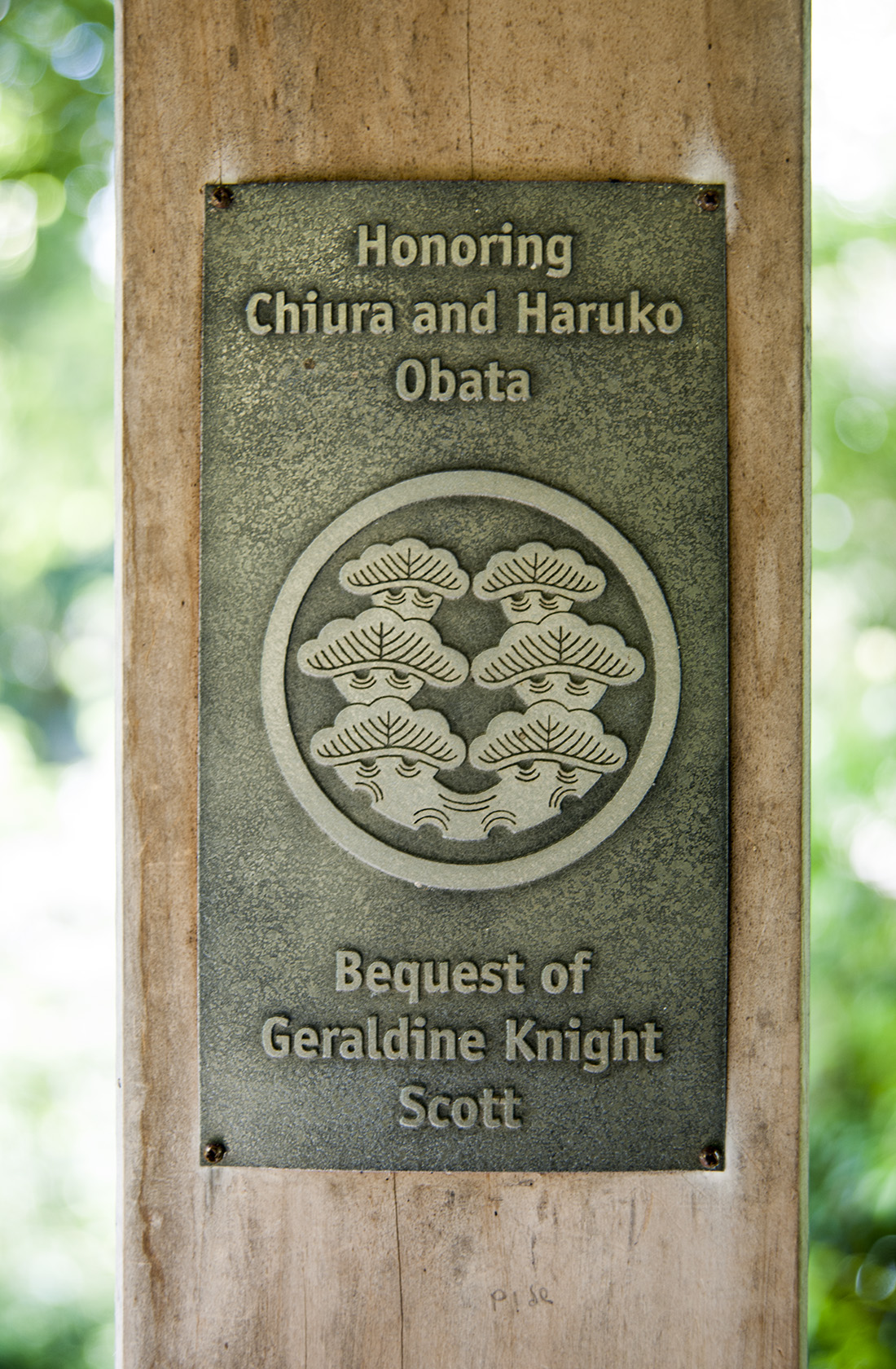 The lantern is dedicated to Haruko Obata for her contributions to the art of flower arranging. As early as the 1915 exposition in San Francisco, her work was important enough to warrant an entire room for display.
