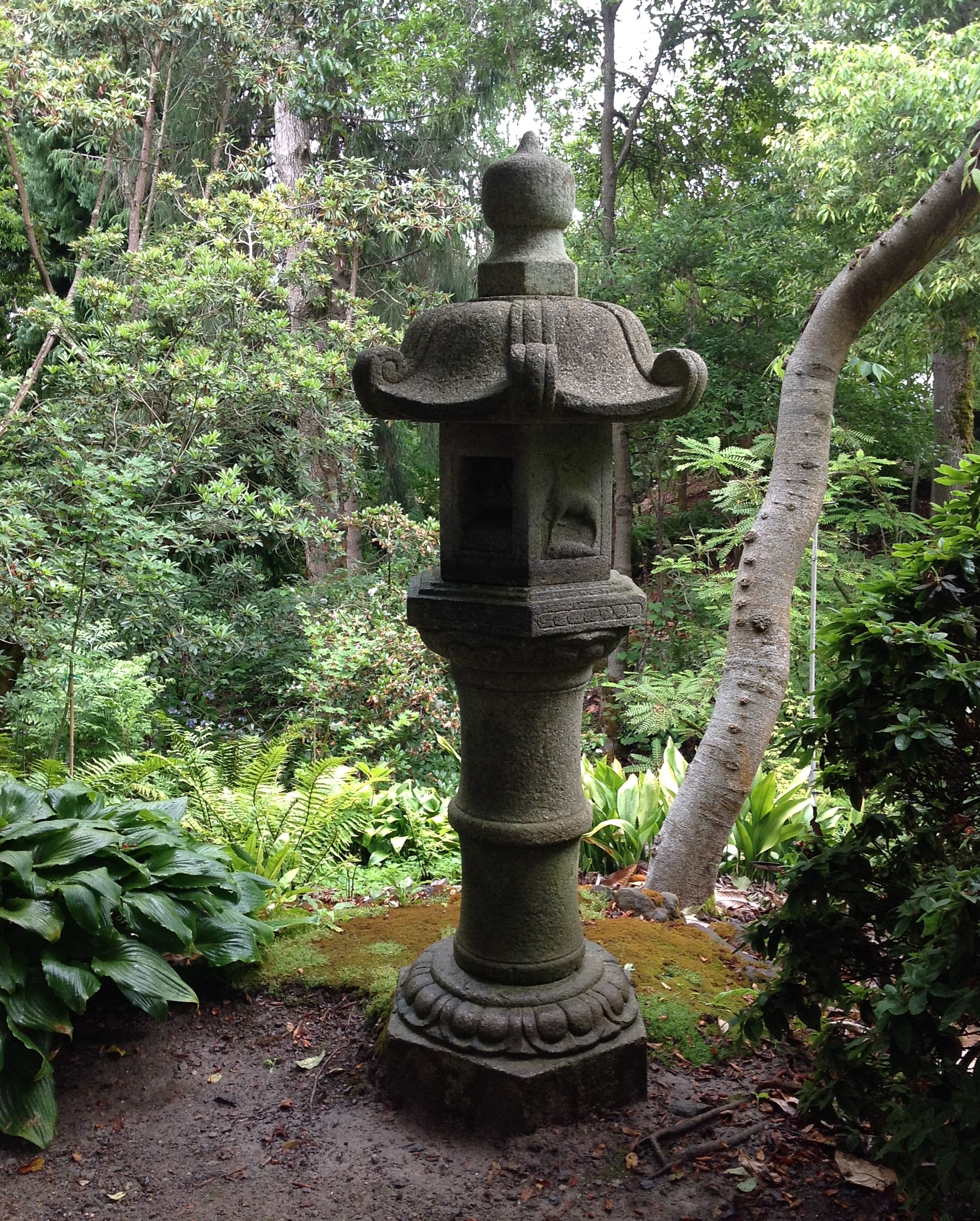 Curator Elaine Sedlack has gardened since 1969 and has been with the Asian collection since 1984. She is active in international plant societies including maples and rhododendrons. Sedlack noted that a flood in 1965 brought a lot of mud down the slope and that the lantern was damaged at that time.
