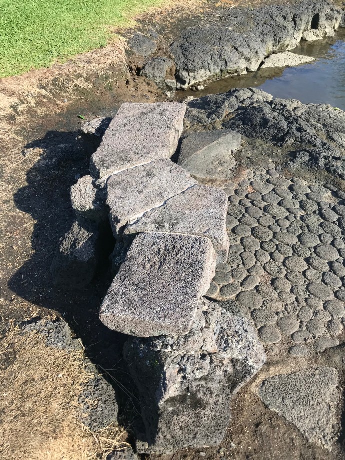 While visiting the port of Hilo, sailors from the U.S. Coast Guard Cutter Walnut helped remove 150 gallons of mud from Waihonu before lunch. They also spread five tons of gravel and accomplished other maintenance tasks.