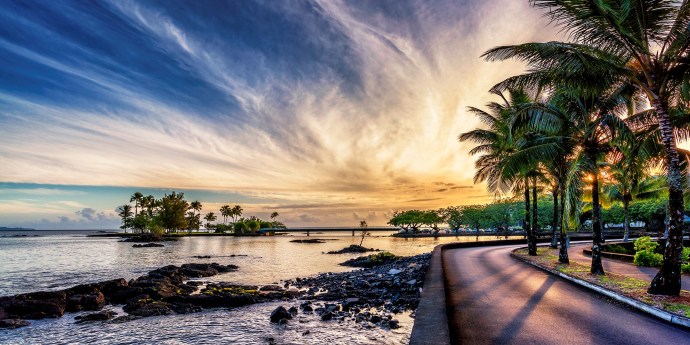 Jared Goodwin’s “Mokuola Sunset” took first place in the third annual Banyan Drive Art Stroll judged entries. A senior at Hilo High School, Goodwin won last year’s photography contest with the cover for the 2018 Friends of Lili`uokalani Gardens calendar.