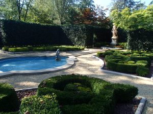 “She hired prominent landscape architects Umberto Innocenti and Richard Webel to expand the existing gardens,” the web site notes. “Thirteen acres of formal gardens extend from the house’s terraces and porches in a progression of outdoor rooms.” (from the Hillwood web site)