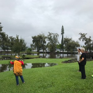 Plein air painters in Lili`uokalani Gardens dodged occasional showers. The only activity that had to be cancelled was Puna Taiko as we could not locate enough shelter to guarantee the safety of their drums.