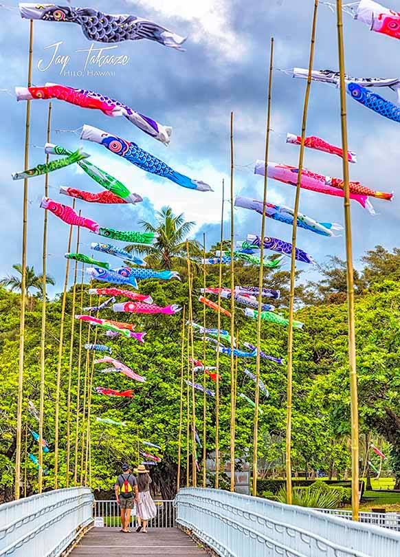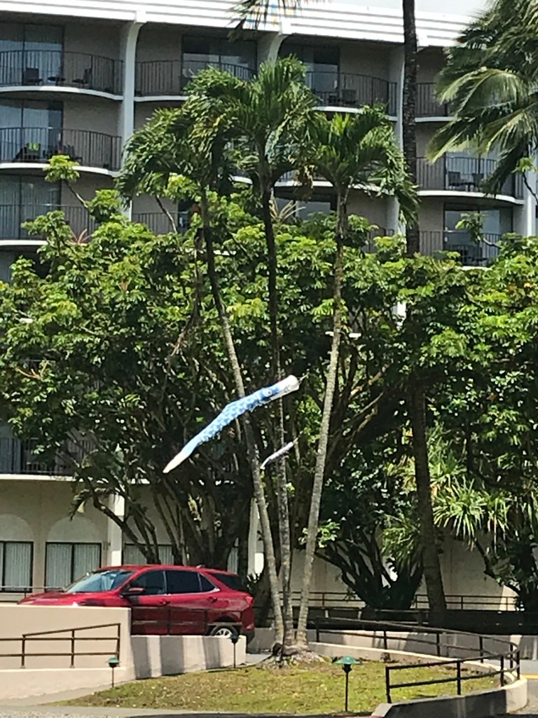 Businesses and restaurants all along Banyan Drive and Lihiwai Street also fly koinobori, continuing an ancient tradition. Locally, it used to be the grandparents who put up the annual display.